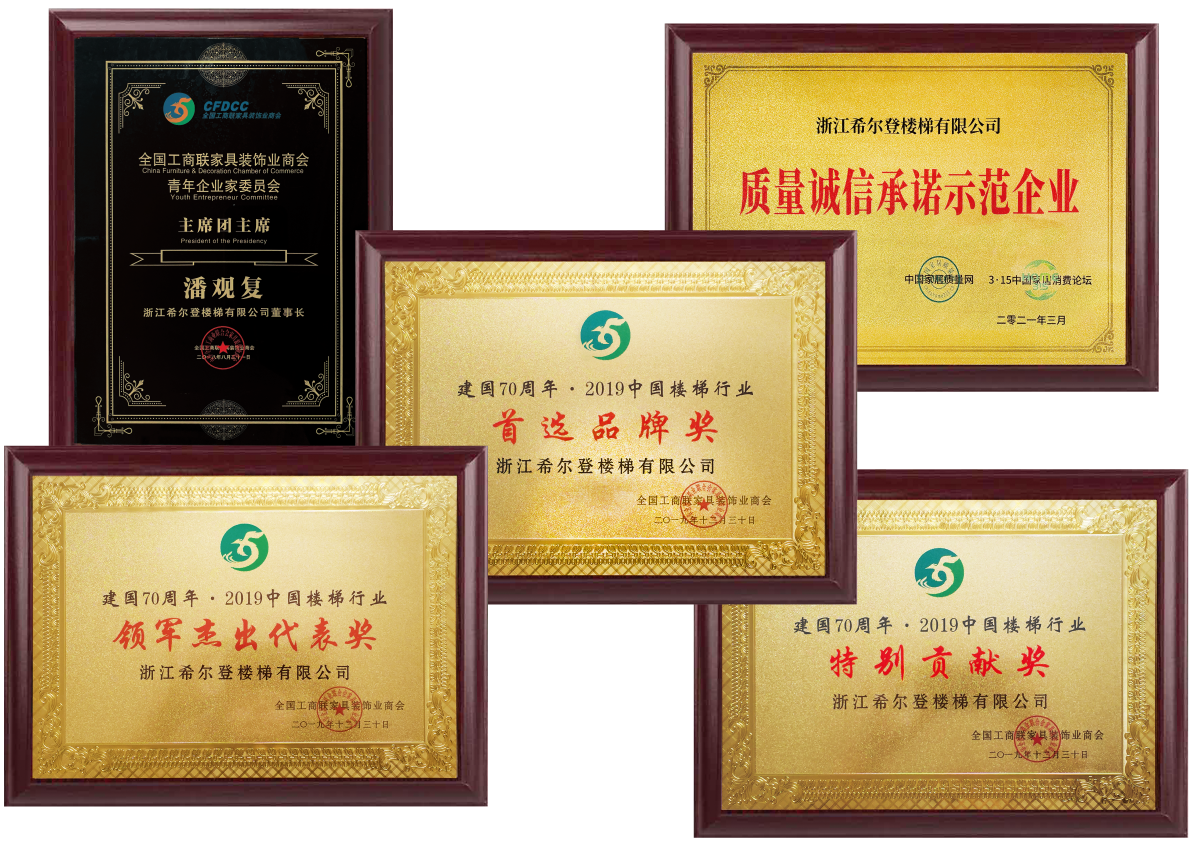 在不斷提升希爾登品牌和企業(yè)實(shí)力的同時(shí),希爾登一直熱心參與樓梯行業(yè)的健康發(fā)展;參與創(chuàng)立全國(guó)工商聯(lián)樓梯專委會(huì)并被推選為中國(guó)樓梯品牌聯(lián)盟執(zhí)行主席和樓梯專委會(huì)執(zhí)行會(huì)長(zhǎng);憑借在行業(yè)內(nèi)的專業(yè)地位,希爾登參與了《木質(zhì)樓梯》,《木質(zhì)樓梯安裝驗(yàn)收和使用規(guī)范》,《住宅內(nèi)用樓梯》,《建筑用玻璃與金屬護(hù)欄》四個(gè)國(guó)家和行業(yè)標(biāo)準(zhǔn)的起草工作。先后榮獲“中國(guó)樓梯十大品牌”、“金木樓梯領(lǐng)軍品牌”、“中國(guó)泛家居發(fā)展中企業(yè)500強(qiáng)”、“中國(guó)家裝行業(yè)金鉆獎(jiǎng)”、“金屬木質(zhì)樓梯一級(jí)資質(zhì)”等二十多個(gè)榮譽(yù)和稱號(hào)。我們幾乎參與和見(jiàn)證中國(guó)樓梯發(fā)展歷程中的所有重大事件。希爾登過(guò)去,現(xiàn)在和未來(lái)都是中國(guó)樓梯的標(biāo)桿企業(yè)。